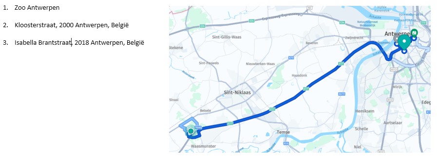 9.00 uur vertrek 30 minuten rijtijd 15 minuten lossen = ongeveer 10.00 uur levering in Antwerpen. Voor elk volgend adres tel je opnieuw: de geschatte rijtijd tot de volgende stop plus 15 minuten voor het lossen.