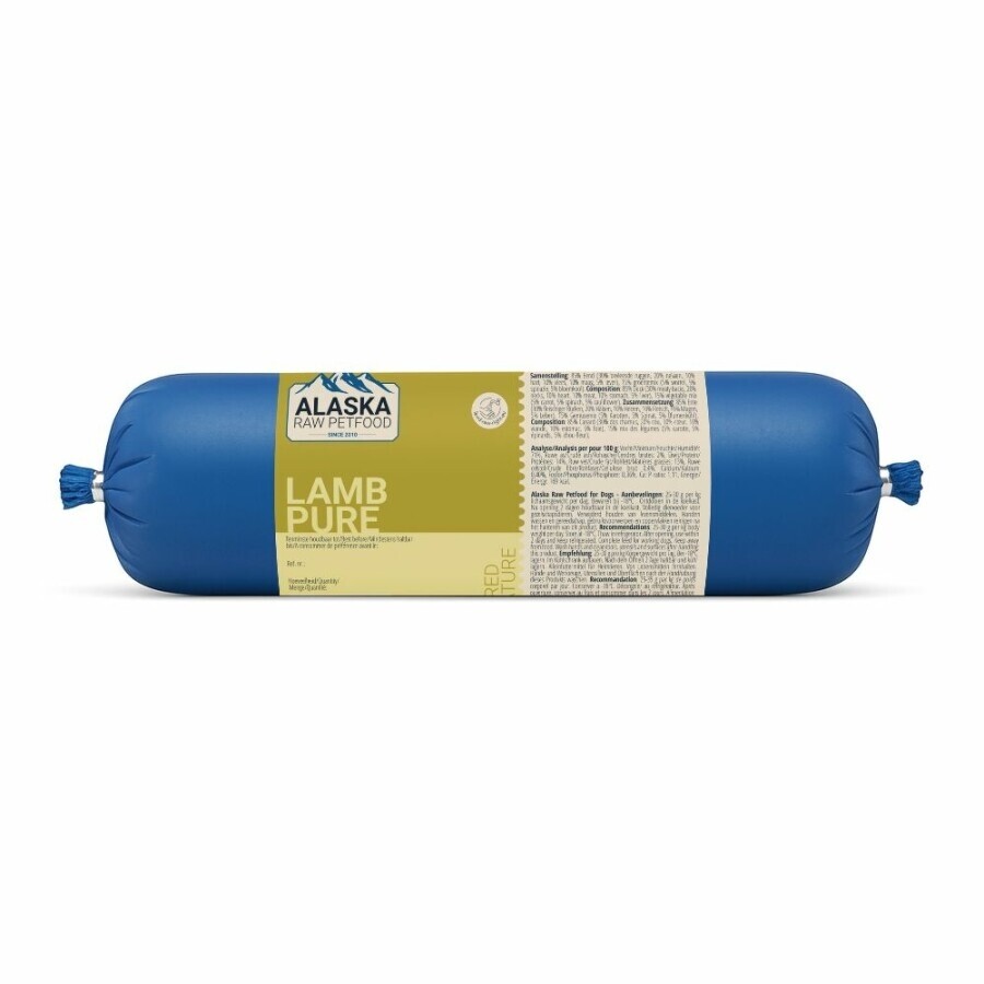 Alaska Pure Lam is verpakt in een worst van 800g.