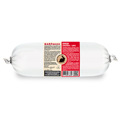 BARFmenu Konijn 250g is een complete mix die is samengesteld uit vers konijnenvlees, verse konijnenbotten en verse konijnenorganen. Aangezien het een complete voeding is dient hij niet te worden afgewisseld. Afwisseling is echter altijd aan te raden omdat elke diersoort toch weer andere vitamines en mineralen bevat en elk dier ook graag eens wat afwisseling heeft.