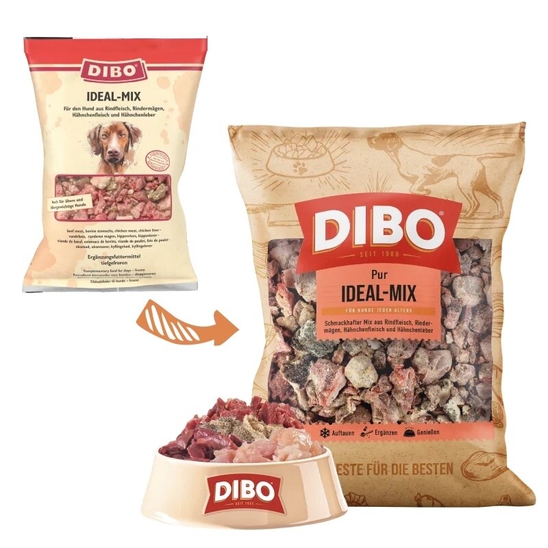 Door minder beweging hebben oudere honden vaak de neiging om overgewicht te ontwikkelen. DIBO Ideal-Mix biedt senior honden een selectie magere vleessoorten om hun gewicht te optimaliseren.