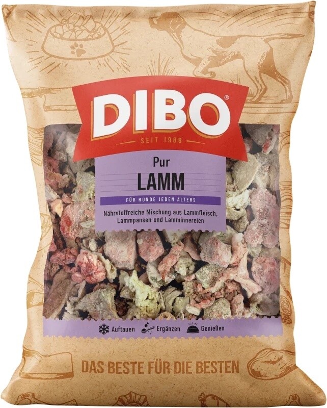 Onze BARF diepvriesvoeding DIBO Lam bestaat uit puur lamsvlees, lamspens en smakelijk lamsorgaan.