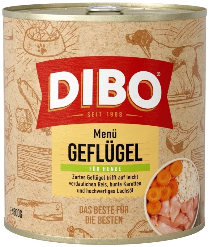 Gevogeltemenu met bruine rijst en wortelen is ook geschikt voor gevoelige honden.