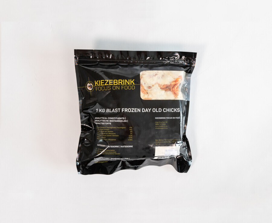 Let op: Eendagskuikens vormen geen compleet menu voor dieren. Wissel af met andere prooidieren/diersoorten om compleet te voeren.