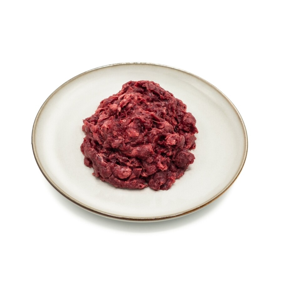 Het gemalen hertenvlees is een wildproduct, hierdoor bestaat er een kans dat het vlees resten van hagel bevat. Daarom raden we sterk aan om het vlees goed te prakken voor het voeren, als extra controle op hagel.